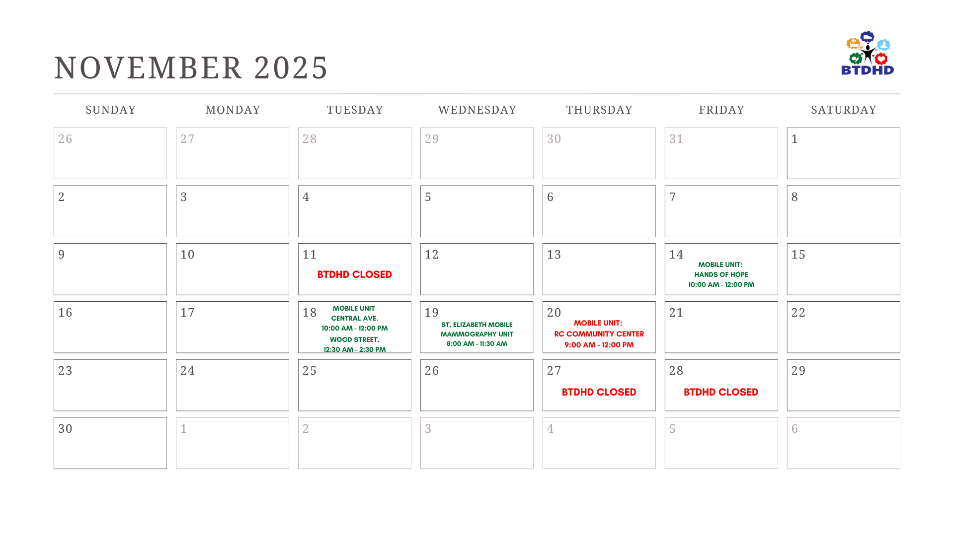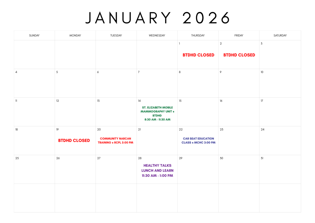 Welcome to the Buffalo Trace District Health Department. We are proud to serve the people of Mason and Robertson Counties as we work toward a healthy community for everyone.